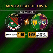 Abbey Rangers bow out of the League at the quarter final stage with a loss to Suncroft. A...
