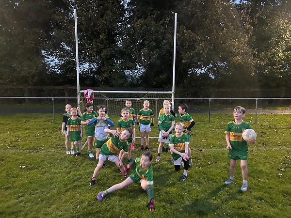 The Kildangan U8s closed out September with a determined performance against a strong Robertstown side, battling not just their opponents, but relentless rain as well. Robertstown Wearing their traditional blue jerseys, the young team faced tough conditions from the first whistle , arrived with only nine players, requiring Kildangan to manage high-impact, rolling substitutions throughout the match. Despite the challenging weather and the need to constantly rotate, the Kildangan players showed tremendous effort and resilience. It was fantastic to see such a dedicated group of green & gold players out in force, completely unbothered by the downpour.
