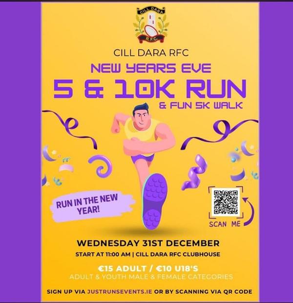 The Cill Dara Rugby Club Walk/Run 5k & 10k takes place on New Year’s Eve