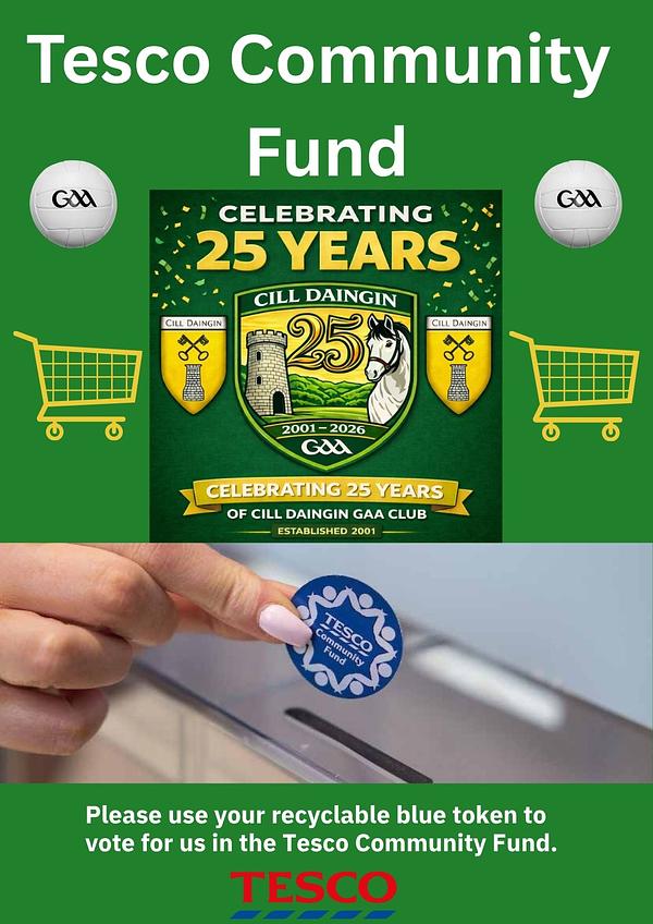 We’d really appreciate your support—if you or your family and friends are shopping in-store, please remember to pick up your blue token at the checkout and cast your vote for Kildangan GAA.