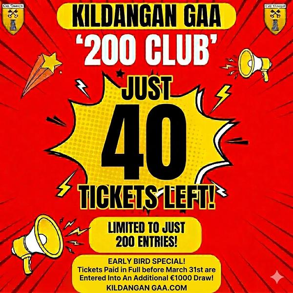 Only 40 tickets remain in this year’s Kildangan GAA 200 Club.