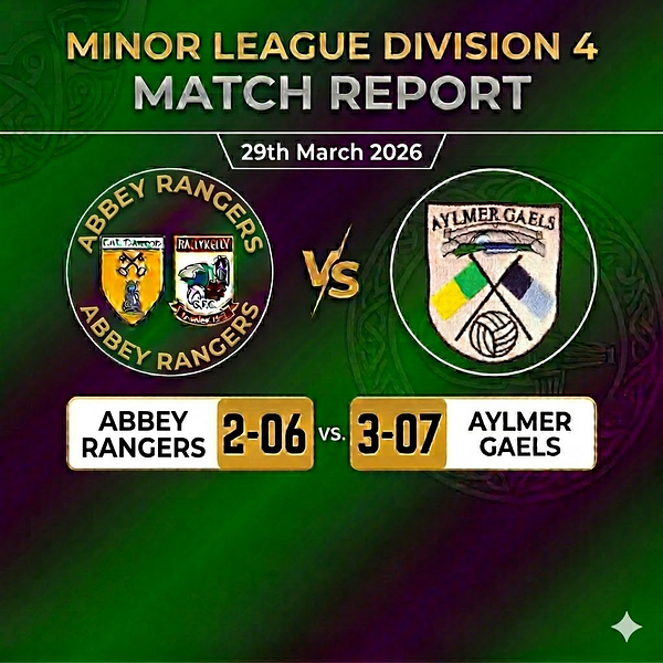 A determined Minor performance in round 5 of the league ended in defeat to Aylmer Gaels 3-07 to Abbey rangers 2-06.
