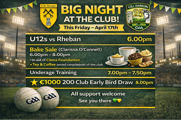 There is a big evening ahead in Kildangan GAA this Friday, with plenty happening across the club and something for everyone in the community.