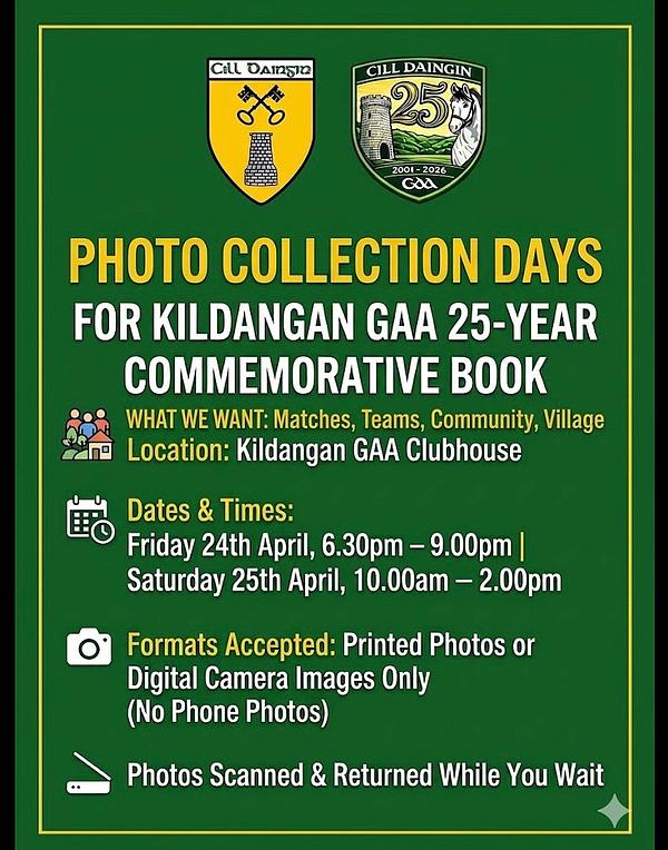 As part of our 25 Year Commemorative Book (2001β2026), we are asking the community to help us capture the memories, moments and people that have shaped Kildangan GAA.