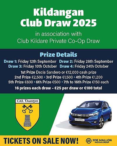 Kildangan GAA County Club Draw tickets are available for one more week only - the cut off to be entered in in all four draws is next Wednesday at 9.00pm