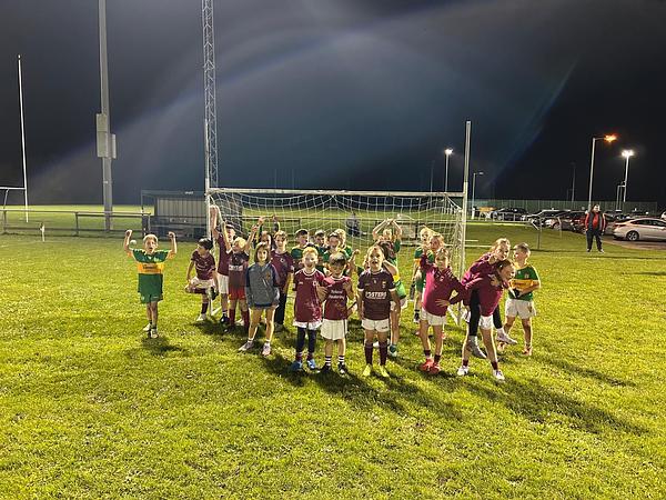 Our Kildangan Under 7 and Under 8 teams made the trip to Ballykelly on Friday, October 10th, for a fantastic evening of football under the lights. Conditions were perfect, and the players didn’t disappoint — two brilliant games were played with great energy and enthusiasm from start to finish.